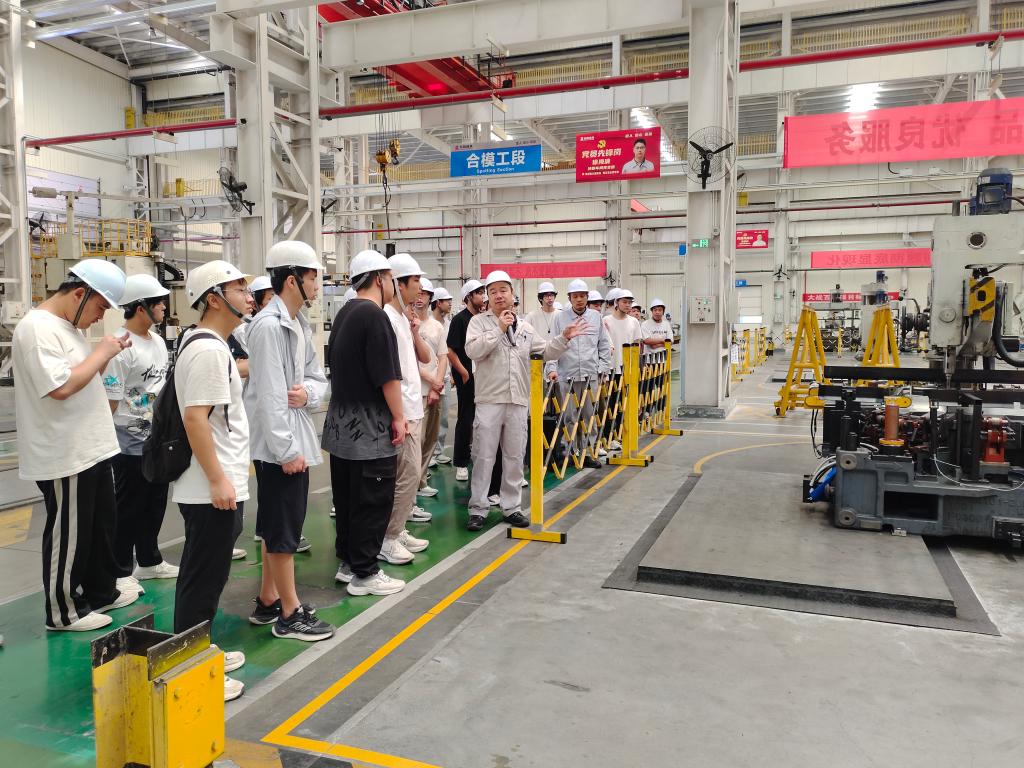 在公司工作人员的引导下,学生们有序参观了车间和产线。走进生产车间,精密的机械设备高速运转,自动化生产线有条不紊地运作,先进的制造工艺和严格的质量管控流程让同学们大开眼界。工作人员详细介绍了模具的设计理念、生产流程以及产品在汽车制造等领域的广泛应用,学生们一边认真聆听讲解,一边就技术细节、行业发展趋势等问题与工作人员进行交流。