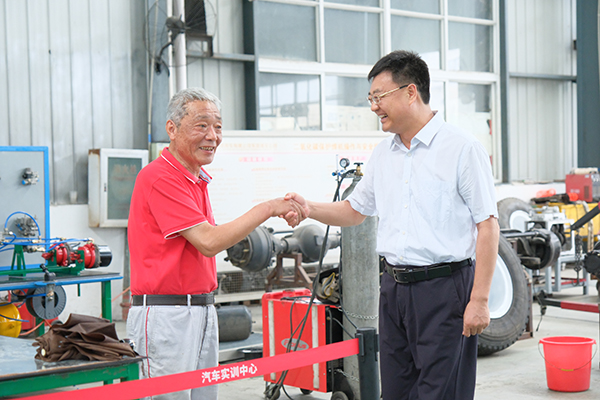 6月29日,校长边疆来到汽车工程学院商用车实训中心,看望慰问全国劳动模范、楚天技能名师、德赢官网特聘教授王涛老师和学校“优秀共产党员”“车城技能状元”马伟。