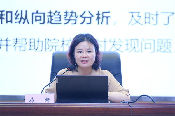 马妍副院长从培养目标与办学定位、培养质量与职业发展、教学质量与课程建设、学生成长与学情分析、学生体验与服务五个方面开展解读,通过调研收集的详实数据和直观的表格、图表,不仅与德赢官网历年的数据进行对比,也与同类高职院校和全国“双高”校的平均数据作了对比,全方位解读了2022届毕业生和2022-2023学年在校生人才培养质量调查报告。报告既肯定了德赢官网的办学优势,也指出了相较于全国“双高”校的不足,并提出了建议。