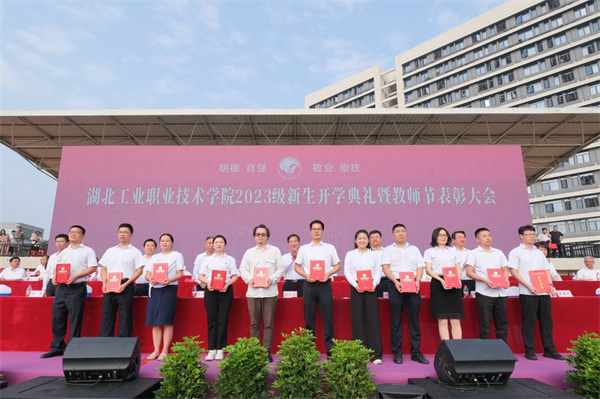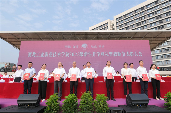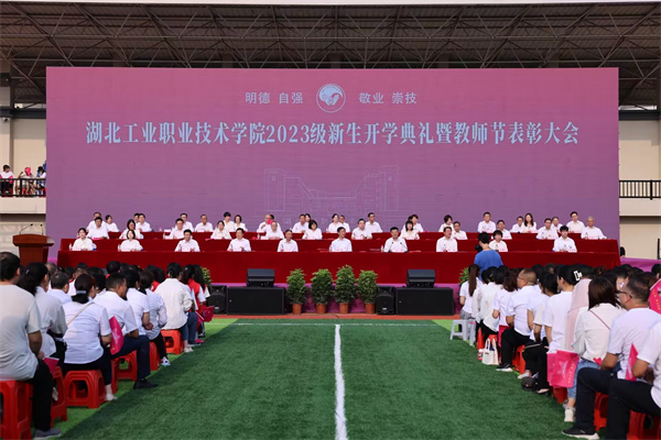 “我们走在大路上,意气风发斗志昂扬……向前进向前进,朝着胜利的方向”,在师生合唱的《我们都是追梦人》歌曲声中,湖北工业职院2023年秋季新生开学典礼暨教师节表彰大会圆满结束。
