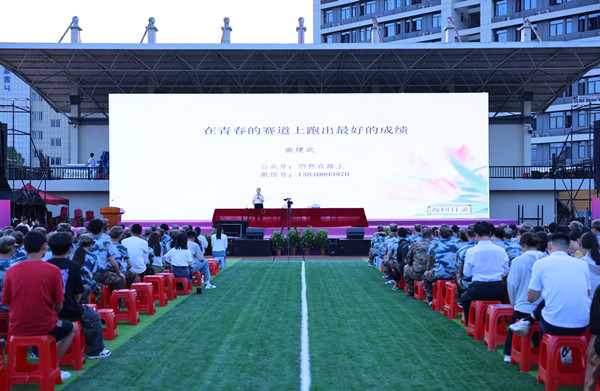 新闻网讯(文/曾晨 图/熊超)9月9日晚,北区运动场上灯火通明、济济一堂,全国“时代楷模”曲建武教授、德赢官网校长边疆受邀为新生讲授“入学教育主题课”,与学子共话青春与成长。活动由副校长郑强主持,6000余名新生现场聆听了报告讲座。