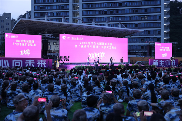 新闻网讯(文/通讯员 徐梦涛 学生记者 罗杨洋 李世杰 图/记者 熊超)为丰富校园文化生活,展现学生社团的青春风采,9月10日晚,学校2023年学生社团风采展演暨“优秀学生社团”表彰文艺晚会在北区运动场举行。副校长胡昌龙,学工处、团委等相关部门负责人,各二级学院师生现场观看了演出。