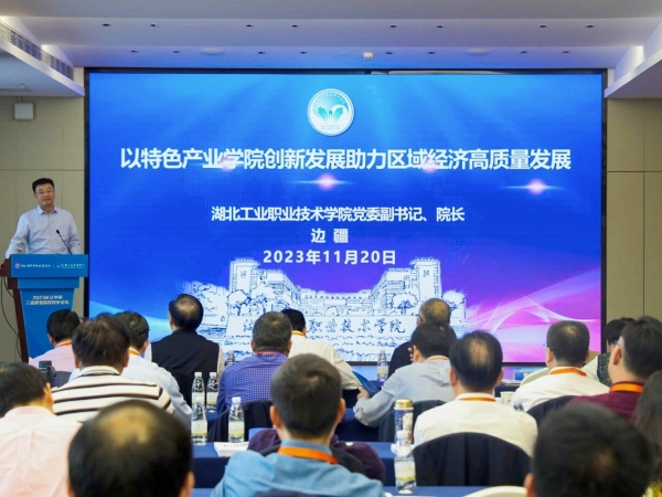 新闻网讯(通讯员 孔鹏)11月20日,黄炎培职业教育思想研究会2023学术年会在武汉开幕,此次会议汇聚了来自全国各地的职业教育专家、学者近300人共同探讨和研究职业教育的现状与未来发展。在20日下午举行的长江中游三省职业院校校长论坛上,德赢官网校长边疆作为湖北省3位交流代表,为与会的湖南、湖北、江西三省79位职业院校校长作《特色产业学院创新发展助力区域经济高质量发展》的主旨报告。