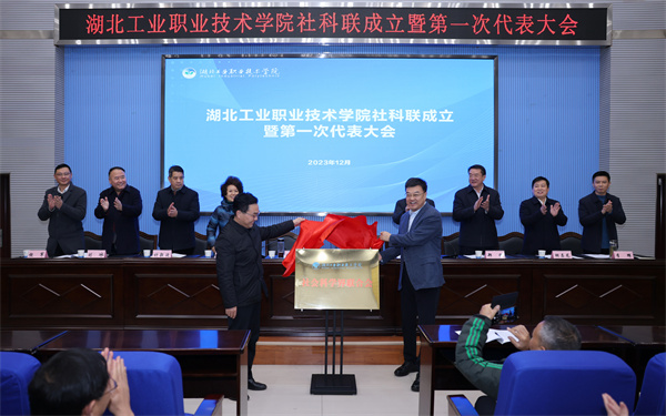 校党委副书记肖海华主持大会开幕式暨第一次全体代表会议,十堰市社科联主席欧阳山、湖北工业职院校长边疆共同为德赢AC米兰中国官方网站社会科学界联合会揭牌。
