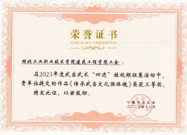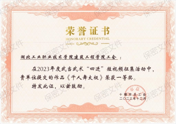 新闻网讯(通讯员 王厚兵)12月13日,十堰市总工会召开十堰市职工思想政治工作成果展示会,在成果展示活动中,德赢官网建筑工程学院推送的短视频“樱花校园千人舞太极”和“传承武当文化强体魄”分别荣获一等奖和三等奖。