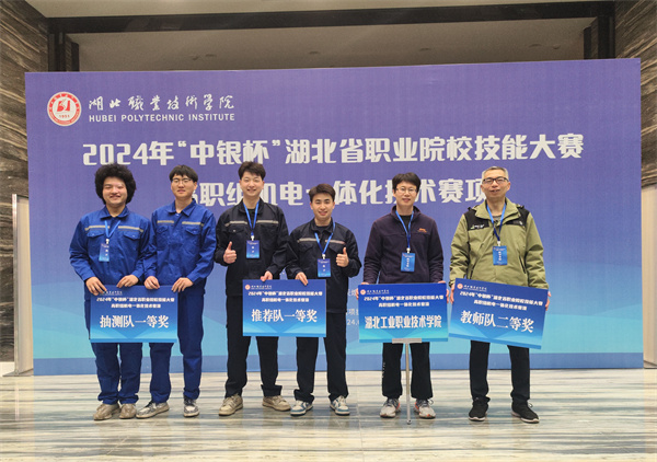 新闻网讯(通讯员 金兴伟)3月8日至3月15日,2024年“中银杯”湖北省职业院校技能大赛(高职组)机电一体化技术赛项在湖北职业技术学院举行,来自全省40所高职院校的139支代表队、160名学生、59名教师参加本次大赛。经过7天激烈角逐,最终德赢官网德赢AC米兰中国官方网站机械制造及自动化专业学生严杰、王家峰组成的推荐队获推荐组一等奖;郭志鹏、何磊组成的抽测队获抽测组一等奖;王典老师获教师组二等奖。