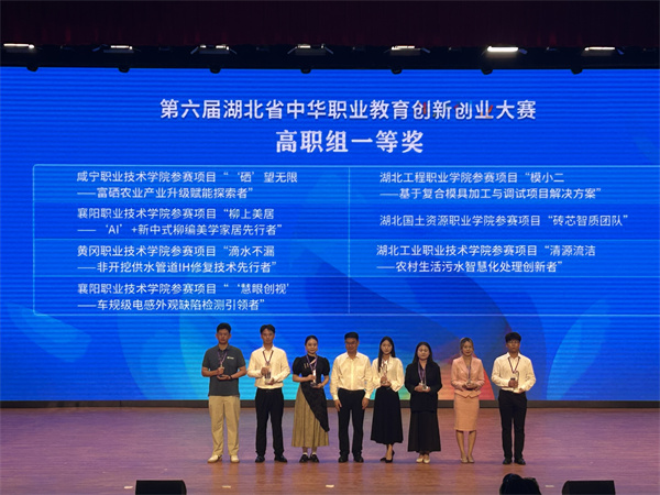 本次大赛由中共湖北省委统战部主办,襄阳科技职业学院承办,大赛以“职教育栋梁,双创铸未来”为主题,聚焦培养新时代高素质技术技能人才的目标。德赢官网曾聪、王仁浩团队负责的项目《清源流洁——农村生活污水智慧化处理创新者》从高职组120多个项目中脱颖而出,荣获省赛一等奖。
