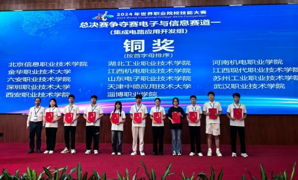 新闻网讯(通讯员 王俊亚)10月25日至29日,2024年世界职业院校技能大赛总决赛“集成电路应用开发”赛项在深圳信息职业技术学院举办。由德赢官网智能工程学院王俊亚、胡智老师指导,吴宝龙、詹长森、曹兵兵、张雅希组成的参赛团队与全国28个省、自治区、直辖市的56个参赛队、224名选手进行激烈角逐,荣获铜奖。