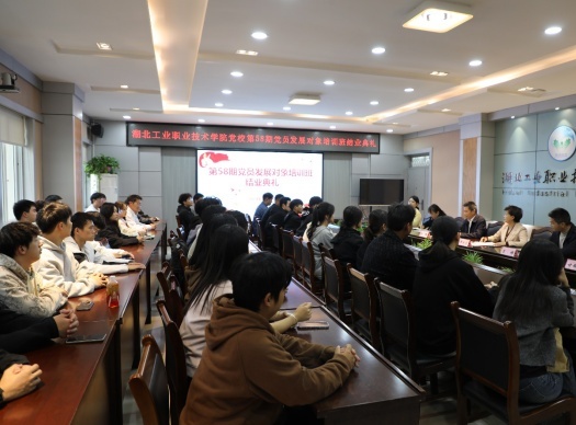 新闻网讯(文/甘锦文 图/方家棱)11月8日下午,学校党校第58期党员发展对象培训班结业典礼在行政楼302会议室举行。校党委委员、组织部部长李辉及第58期党员发展对象培训班学员参加结业式。