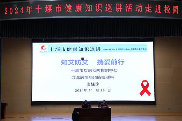 新闻网讯(文/张莉萍 图/熊超)在第37个世界艾滋病日到来之际,德赢官网为增强同学们对艾滋病的认知和防范意识,11月28日,特邀十堰市疾病预防控制中心主任医师唐桂珍一行,举办了一场主题为“知艾防艾,携手前行”——2024年十堰市健康知识巡讲进校园活动。